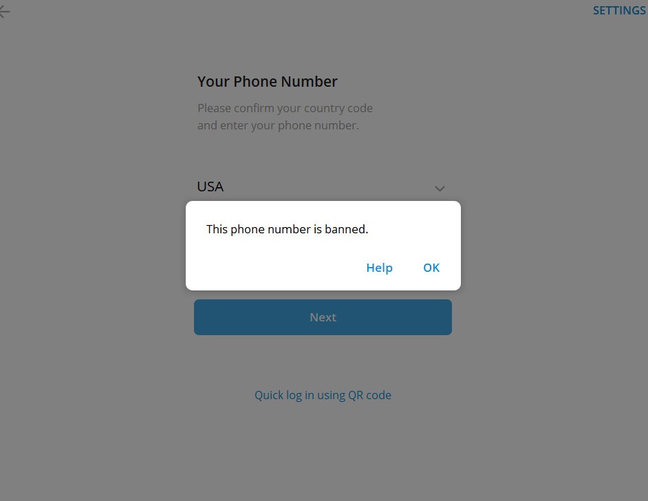 如果您的账号刚注册上,就被立马弹出来了,然后再次输入号码显示被封禁(如图所示),那么基本上是vpn问题导致的被秒封,这种情况即使再次购买账号基本上也是一样的结果,所以请根据我们提供的解封教程申诉解封下(按教程完全操作一遍,快的话一天内就解封了),而且,重要的是解封后的账号会更稳定耐用!!
